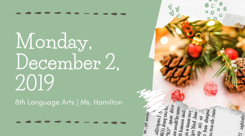We will take our next Lexile measurement with the SRI assessment a week from today, Monday, December 9. Our district benchmark will be December 16 and 17. Next week we will review and complete some learning activities and writing tasks to prepare for the assessment.